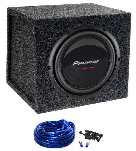 Package: Pioneer Champion TS-W259S4 10" 1200 Watt Peak / 350 Watt RMS 4 Ohm Car Stereo Subwoofer + Atrend E10S Dual 10" MDF Vented Subwoofer Enclosure + Single Enclosure Wiring Kit With 14 Gauge Speaker Wire + Screws + Screws + Spade TerminalsFeatures: Pioneer Audio TS-SW259S4 10" 1200 Watts Size: 10 inches Peak Power: 1200 Watts RMS Power: 350 Watts Seamless Injection Molded Polypropylene (IMPP) composite cone Dual layer, fiber reinforced elastic polymer surround Large spring loaded, push style binding posts High temperature voice coil Large double stacked high energy magnets Designed for sealed, ported, or bandpass enclosures Impedance: 4 ohm Frequency response: 20 - 280 Hz Lowest resonance frequency: 48 Hz Sensitivity (1W/1m): 92 dB Woofer size: 25 cm Voice Coil bobbin type: Aluminum, diam. 1.5 inch (40mm) Extended and Vented pole yoke Double-stacked, high power Magnets Push-type Terminals Recommended sealed enclosure: 18,4 - 35,4 litres Cut-out Hole: 238 mm Mounting Depth: 140.9 mm Single 10" sealed hatchback subwoofer enclosure Dimensions in inches: 15.5" Width x 12" Height x 10.25" Top depth x 12.75" Bottom Depth Volume per sub: 0.88 cubic feet Machine precision cut mounting holes 3/4" heavy Dusty Construction Multi layers of high-grade glue ensure long life and no air leaking out High quality spring loaded terminals Dado end panels Designed, tested, and engineered to work with most of today's popular woofers. These enclosures are built with the quality additives needed to maximize the performance of any sound system. 10 Drywall Wood Screws (Wood screws are the type of screws; the screws are actually made of metal) 12 Feet of 14 AWG Blue Speaker Wire 2 Spade Terminals